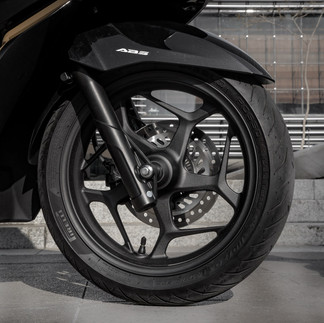 A frenagem é outro ponto alto da Honda PCX 2026: as versões PCX 160 DLX ABS e PCX 160 ABS contam com discos de freio em ambas rodas e sistema ABS de 1 canal. Na PCX 160 CBS, o sistema CBS – Combined Brake System, utiliza disco na dianteira e tambor na traseira. O chassi de aço tipo berço duplo, com suspensão telescópica na dianteira e par de amortecedores na traseira, oferece conforto, estabilidade e a necessária agilidade.