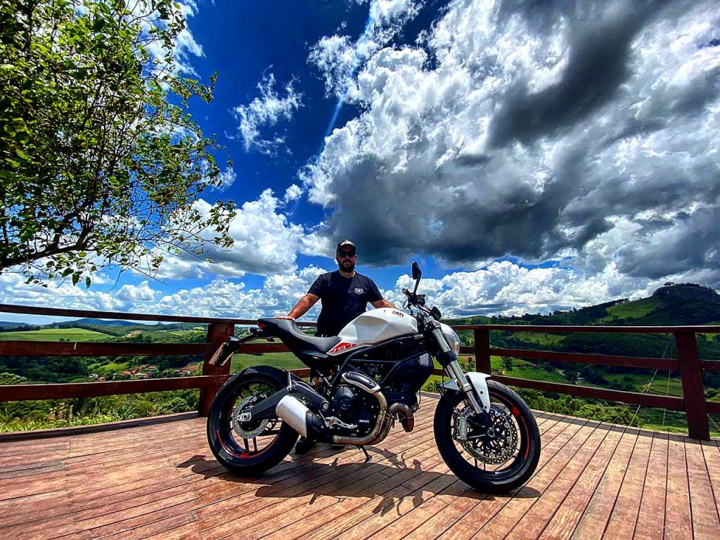 Apóspilotar a moto por um dia em São Paulo, no sábado, finalmente, pude sair dacidade e colocar a Monster para rodar onde realmente é divertido. O destinoescolhido foi Pedreira, para poder testá-la em diferentes condições de pista. Saindodo trecho urbano, já peguei a Rodovia dos Bandeirantes. Para quem não conhece,é uma estrada com múltiplas faixas de rolagem. O câmbio de 6 marchas respondemuito bem mesmo na última marcha, sem necessidade de reduzir para pequenasultrapassagens. Rodei cerca de 150 km na velocidade de cruzeiro (120 km/h) e,nesse trajeto, não tive problema com o vento mesmo com o estilo “naked” damoto. Porém, em viagens mais longas (acima de 300 km), pode ser algo desconfortável.Vale lembrar que a proposta da Monster 797 não é enfrentar longas distâncias. Paraisso, a Ducati tem motos como a Multistrada.