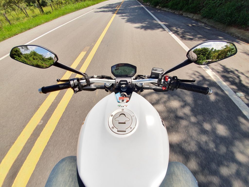 Além de testar a máquina a caminho de Pedreira, também aproveitei o domingo de sol para passear na gloriosa Estrada dos Romeiros – um destino muito conhecido pelos motociclistas paulistanos que apreciam um trajeto repleto de curvas. Como já estava bem mais acostumado com a Monster, esse trajeto foi ainda mais divertido do que no dia anterior e realmente pude fazer aquela mototerapia de que tanto gostamos. Na volta, peguei um pouco de chuva e, como era de se esperar, o pneu traseiro joga um pouco de água nas costas. Nada alarmante, somente um ponto que deve ser lembrado. Também aproveitei para fazer algumas imagens que vocês podem ver no vídeo abaixo: